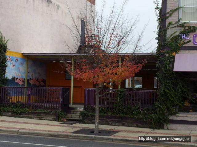 이렇게 바닥에 우수수 떨어지는 붉은 낙엽들은 손님들이 들어오고 나가느라 출입문이 열릴 때마다 가게 안으로